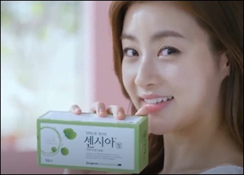 센시아 모델은 9년 연속 붙박이 모델인 배우 김미숙과 함께 배우 강소라, 개그맨 김국진, 최근에는 가수 겸 배우 권나라 씨가 함께 나와서 매끈한 다리를 뽐내고 있습니다.